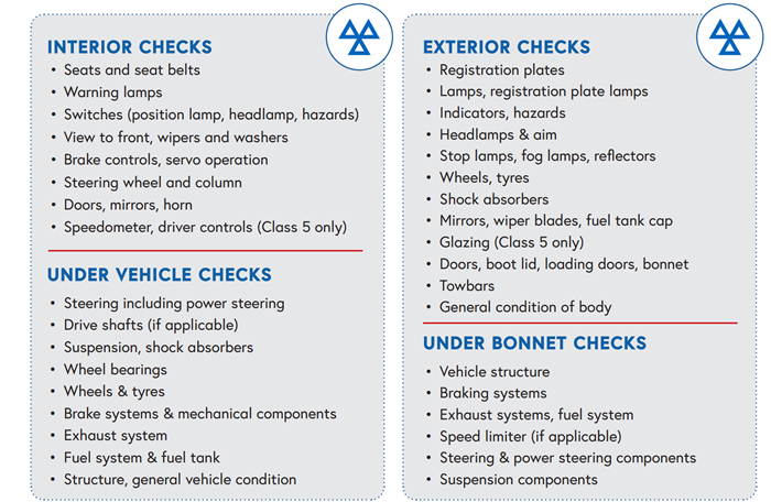 The standard Class 4 MOT covers: